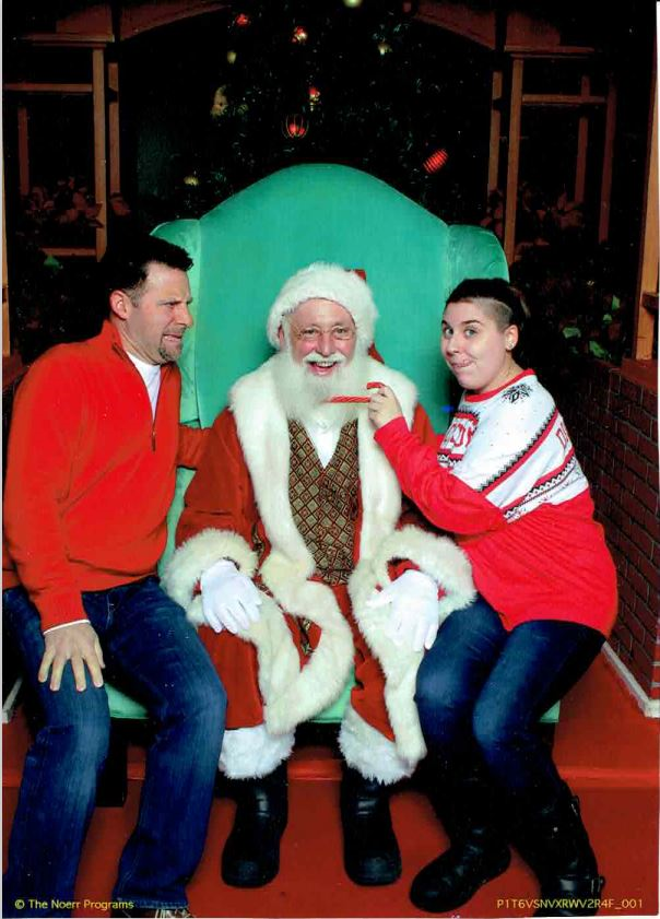 That feeling of Christmas magic is something that I look forward to every year, and Santa is just another part of Christmas magic for me, just like for my family. My dad and I love taking gag pictures with mall Santas every year, sometimes where Santa is crying on Dad’s lap, sometimes we’re pulling candy from Santa’s beard (don’t worry, I’ve provided pics below). We can think of no better way to commemorate Christmas than getting Santa in on some silly fun. We even have a running joke where, while just strolling through the mall, dad tells me that the mall Santa is waving at me so that I look over and wave before I realize that he’s not even looking in my direction (can someone please tell him that this isn’t funny!?).